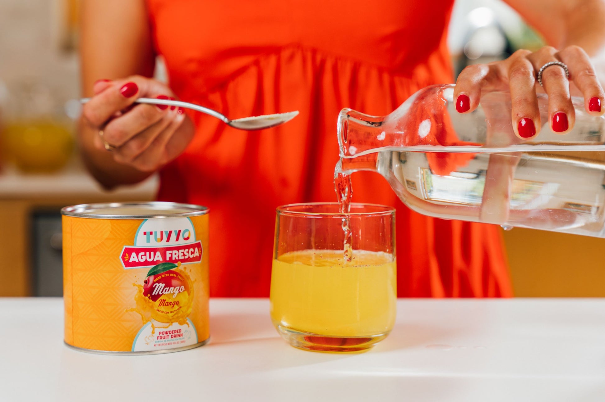 Add 2-3 tablespoons of mix to 8-10oz of water, still or sparkling. Stir to mix and add ice. To make a pitcher, use 1 container of Agua Fresca mix. Fill a pitcher up 3/4 of the way. Add the powder to the pitcher and stir. Either add ice and enjoy right away or put it in the fridge to chill.