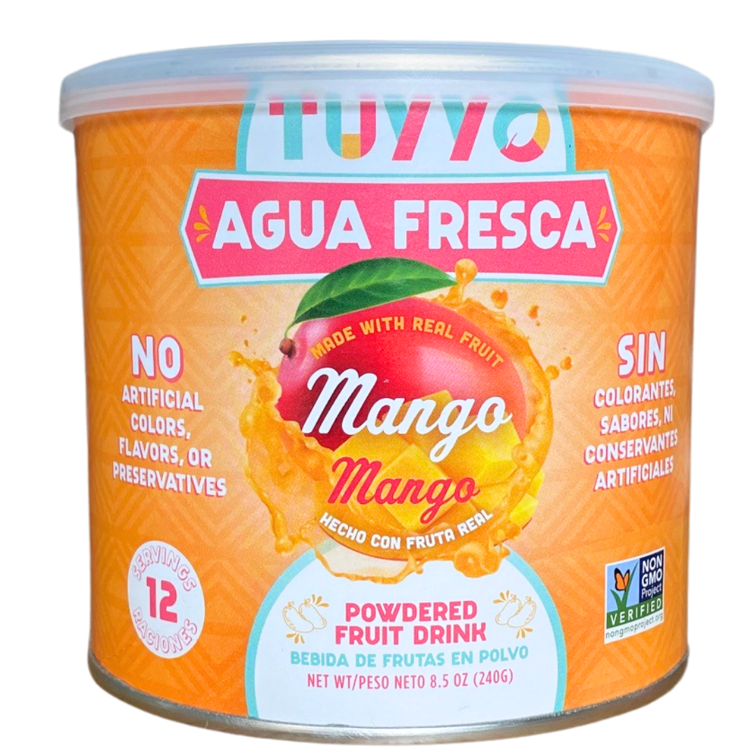 Description: A true showstopper, we make this Agua Fresca with real powdered mangos. Enjoy over ice on a hot day or with our favorite, Baja fish tacos with pineapple and mango salsa!